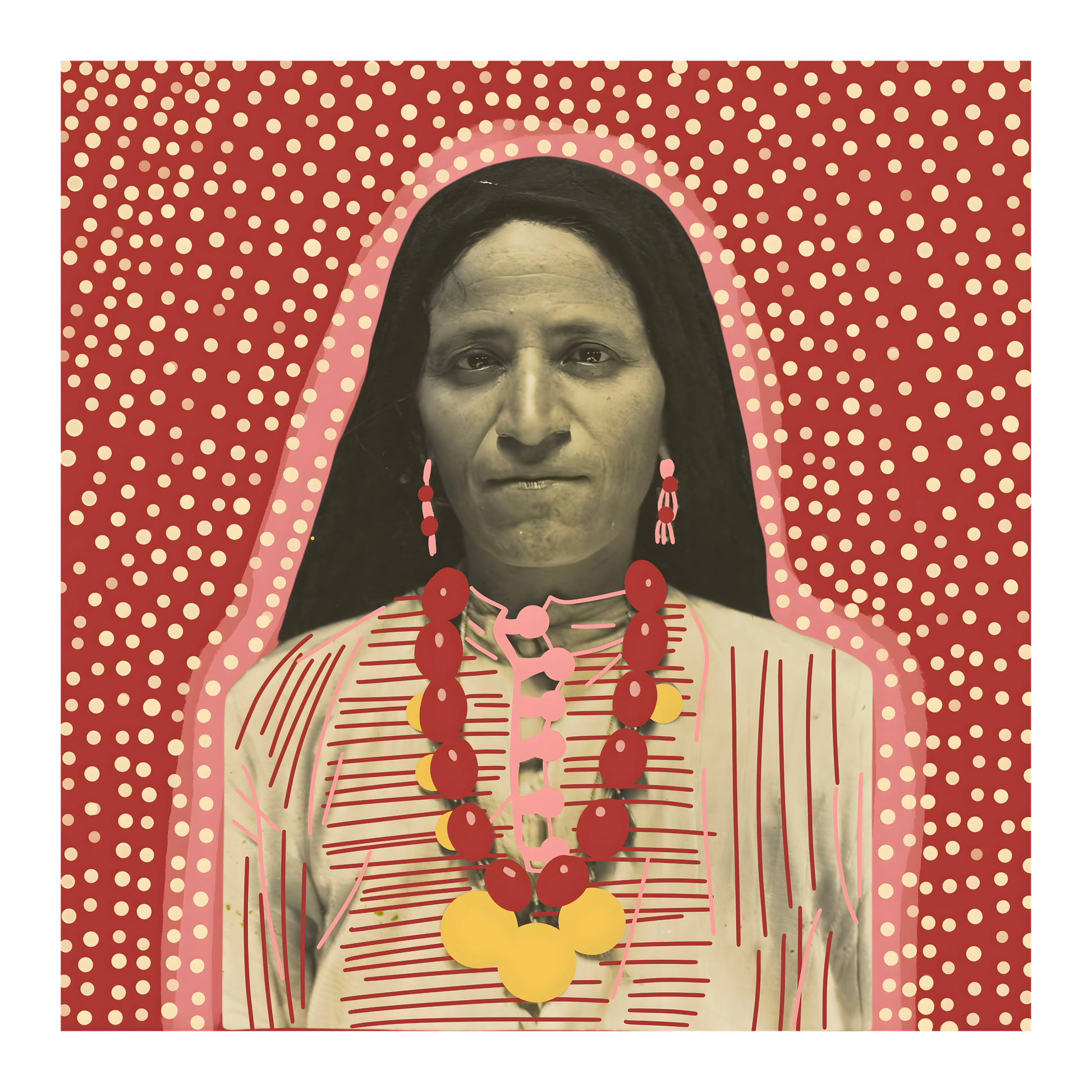 Our approach reclaims those images through art. By drawing directly onto the archival photographs, we restore depth, dignity, and cultural context—highlighting heritage dress, posture, and expression while preserving the integrity of the original subject. The result is not a replacement of history, but a dialogue with it: memory held intact, yet made resilient, contemporary, and alive in the present moment.