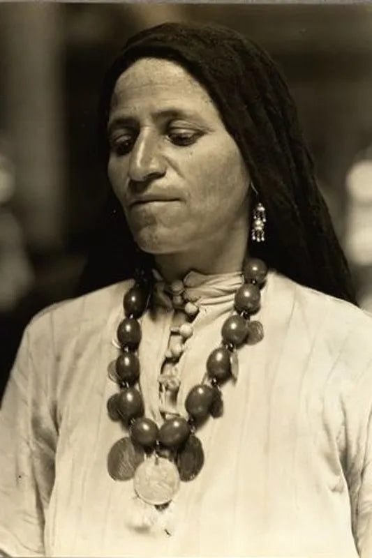 The woman featured on this tote is a Syrian immigrant whose portrait was taken at Ellis Island between 1905–1915, during one of the largest waves of Arab migration to the United States. She represents thousands of women—mothers, workers, artists, fighters, and dreamers—who crossed oceans carrying culture, labor, and vision with them. Many arrived unnamed, undocumented in history books, yet foundational in reality. This piece honors her—and the generations she made possible.